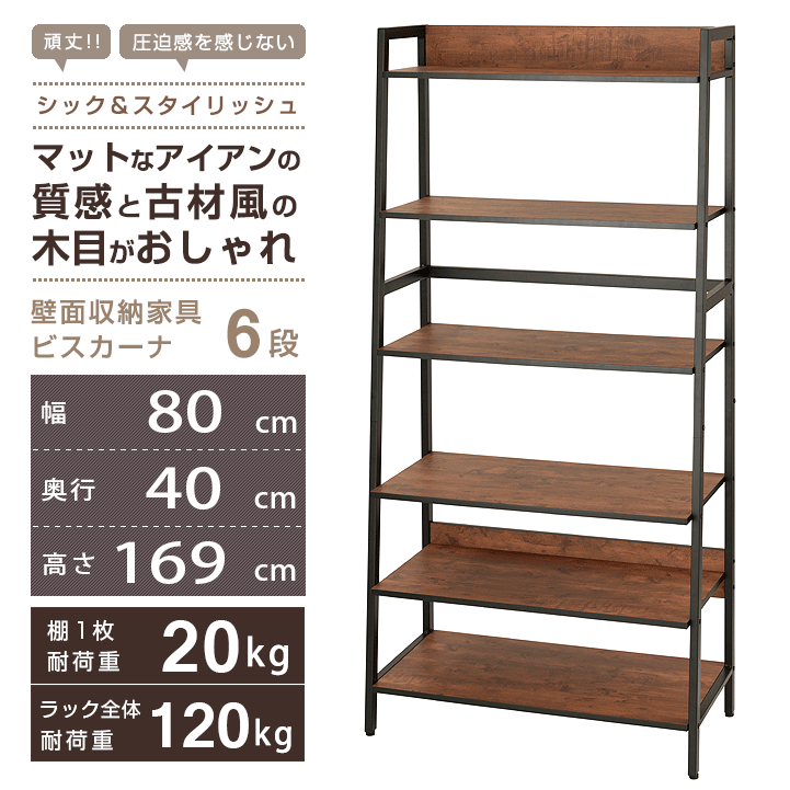 商品スペック商品名/型番 壁面収納家具 BISCANA ビスカーナ W80 フリーラック 6段BC8017-6カテゴリスチールラック分 類ウッドラックサイズ幅80×奥行40×高さ169cm JANコード4550283771747耐荷重棚板1枚あたり:約20kg セット内容 棚板各種サイズ×6、背板(棚)×2、横バー×1本、本体フレーム脚(上)×2本、本体フレーム脚(下)×2本、ジョイント×4個、アジャスター(足パーツ)×4個、各種ネジ、組立用ドライバー×1本、取扱説明書(組立説明書) 材質棚板:パーティクルボード(PVC加工)、フレーム:スチール(エポキシ塗装) 本体重量24.6kg 梱包サイズ96×47×18.5cm、梱包重量:26kg メーカー/ブランド株式会社ドウシシャ(DOSHISHA)商品仕様◆お客様にて組み立ての商品です。